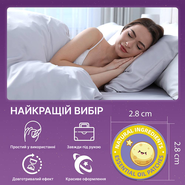 Цей пластир створений для тих, хто прагне відновити здоровий та спокійний сон. Натуральні інгредієнти допомагають заспокоїти тіло та розум, сприяючи швидшому засипанню. Він підтримує тривалий і глибокий сон протягом ночі.